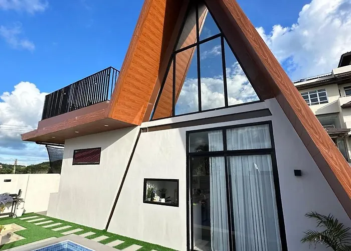 Featuring a swimming pool for guests' relaxation, the 2-bedroom Cozy Modern A-Cabin In Tagaytay Tagaytay City is located nearly a 25-minute walk from Tagaytay Highlands. Boasting access to a terrace, the villa invites guests to visit Museo Orlina, located 2.2 km away.